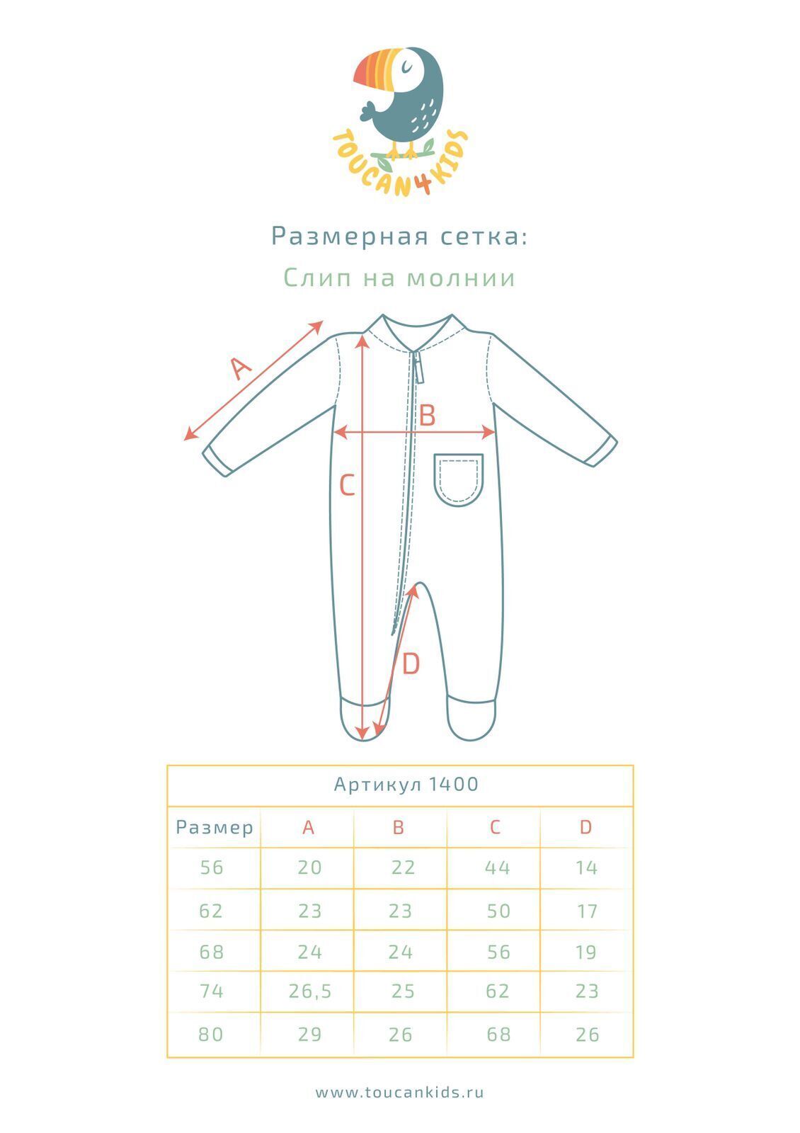 Комфортный слип на молнии из 100% хлопка, имеющего международный сертификат OEKO-TEX (экологичность производства ткани). Модель с двумя бегунками для легкого переодевания малыша.