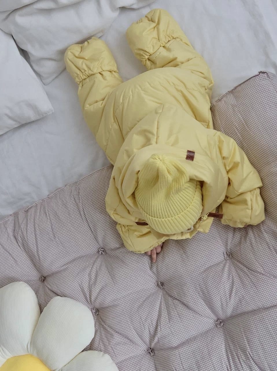 Легко надевать даже на новорождённых благодаря двум молниям. Пока малыш маленький, манжеты удобно закрыть, что избавит от необходимости надевать носочки и рукавички. Далее можно добавить пинетки. Глубокий капюшон имеет утяжки, а ветрозащита на груди регулируется кнопками.