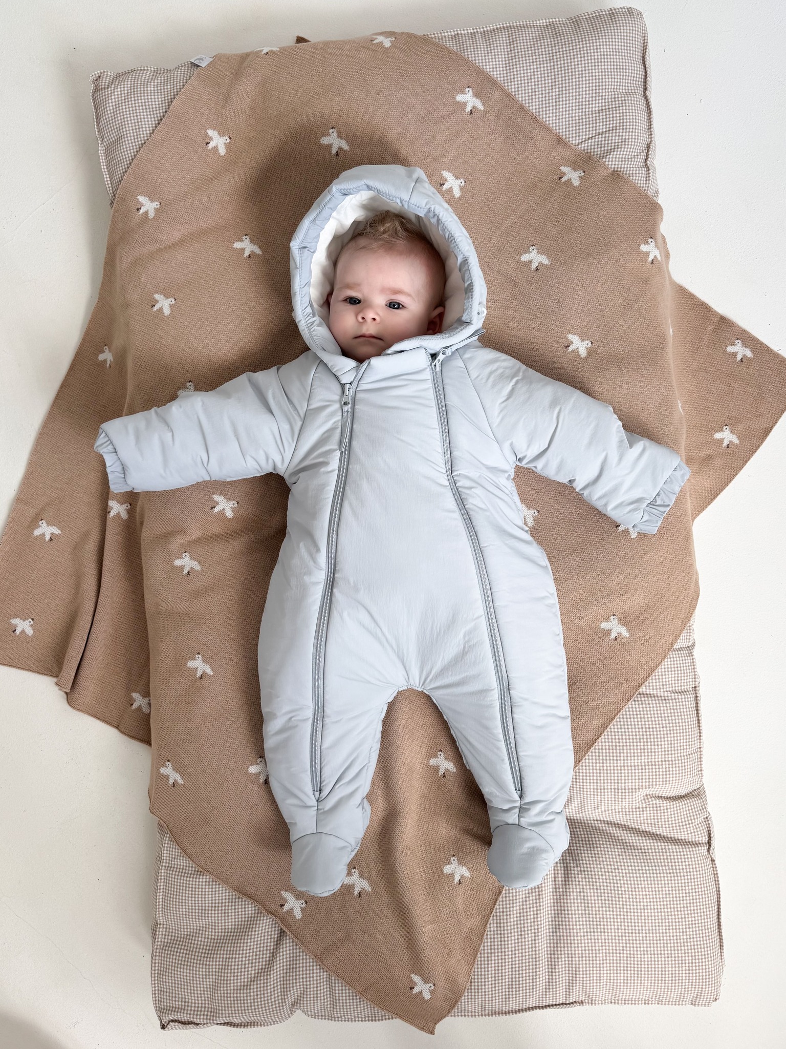 Лёгкий, но тёплый демисезонный комбинезон Tot — отличный выбор для прогулок в межсезонье. Верх выполнен из прочного нейлона, который защищает от ветра и влаги. Внутри — подкладка из 100% хлопка: мягкая, приятная к телу и комфортная для малыша. Двойная молния позволяет быстро и легко переодеть ребёнка. А глубокий капюшон надёжно защищает от ветра и сквозняка.