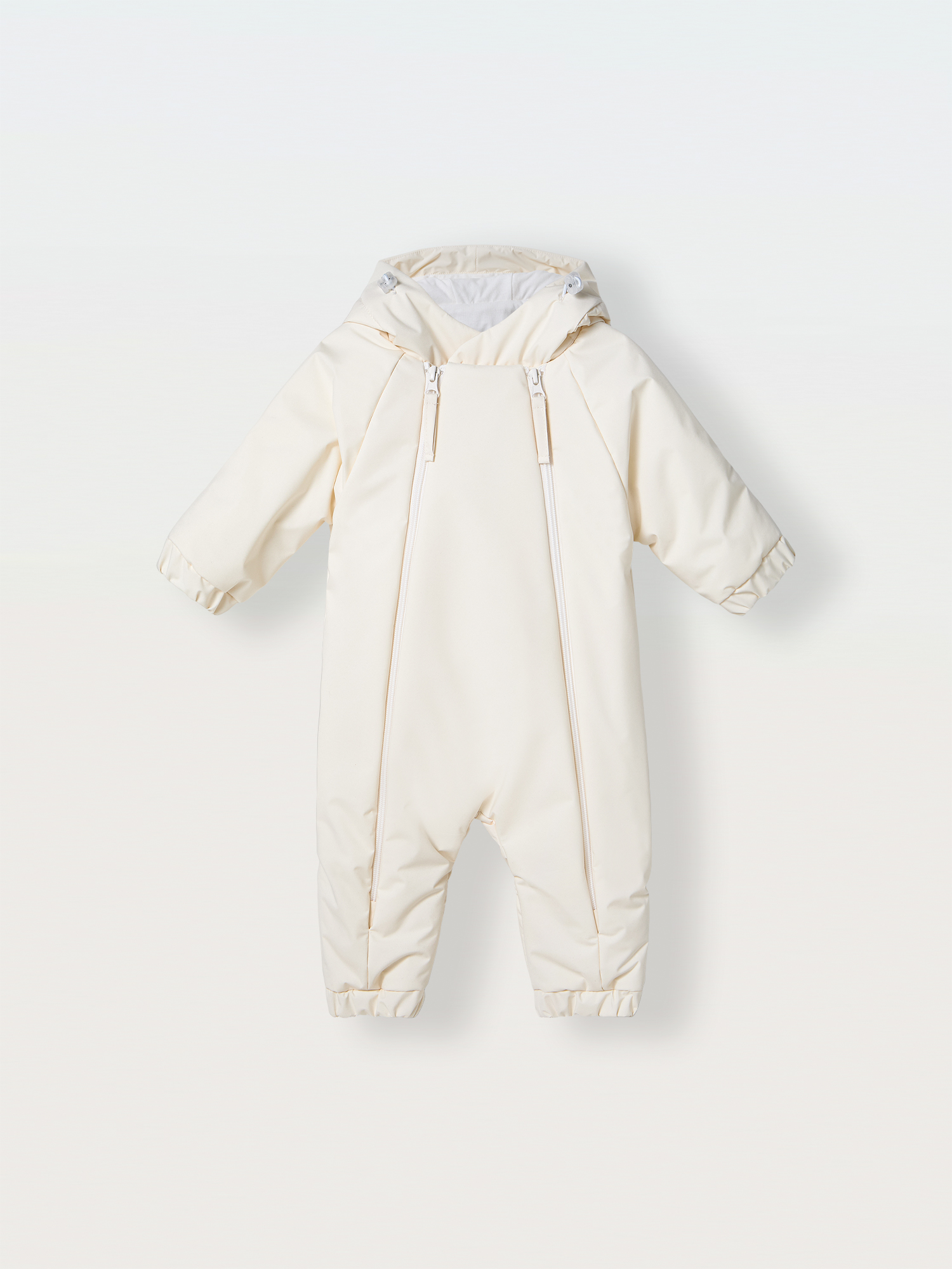 Легко надевать даже на новорождённых благодаря двум молниям. Пока малыш маленький, манжеты удобно закрыть, что избавит от необходимости надевать носочки и рукавички. Далее можно добавить пинетки. Глубокий капюшон имеет утяжки.