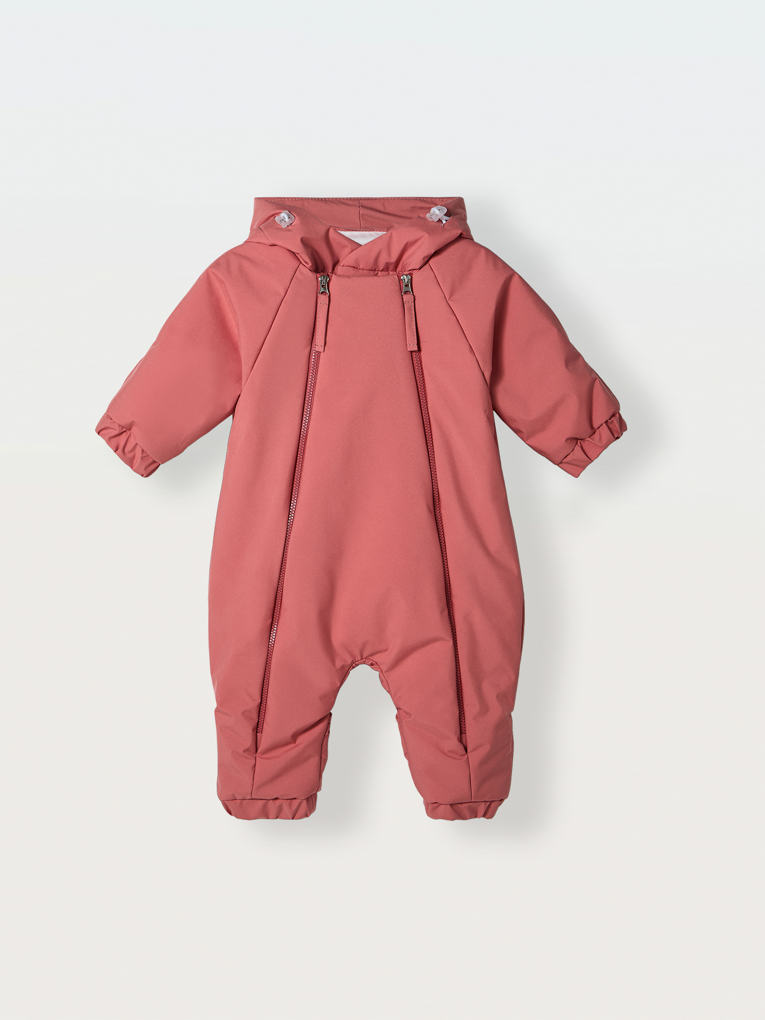 Легко надевать даже на новорождённых благодаря двум молниям. Пока малыш маленький, манжеты удобно закрыть, что избавит от необходимости надевать носочки и рукавички. Далее можно добавить пинетки. Глубокий капюшон имеет утяжки.