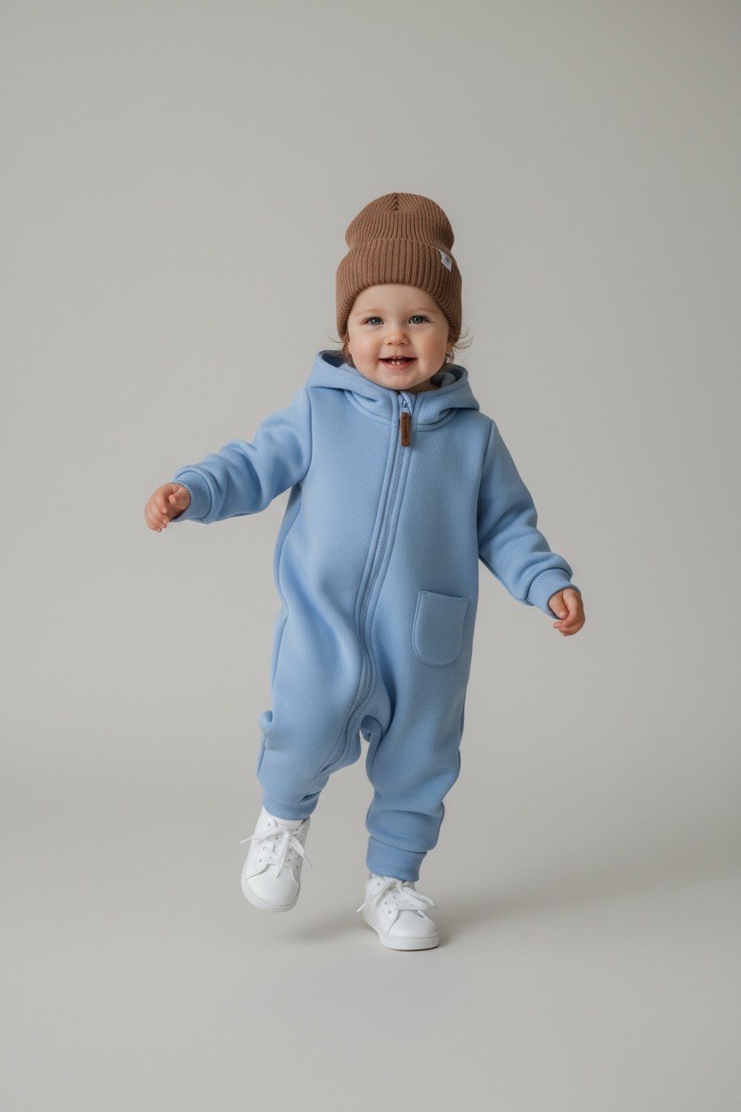 Комфортный комбинезон из качественного футера с начесом можно носить круглогодично. Он отлично подходит на весенне-летний сезон, а также как поддева на более прохладную погоду. Удобный крой не сковывает движения ребенка, мягкий начёс хорошо удерживает тепло. Молния наискосок по всей длине имеет защитную планку, а сверху добавлены анти-защипы для защиты шеи малыша.