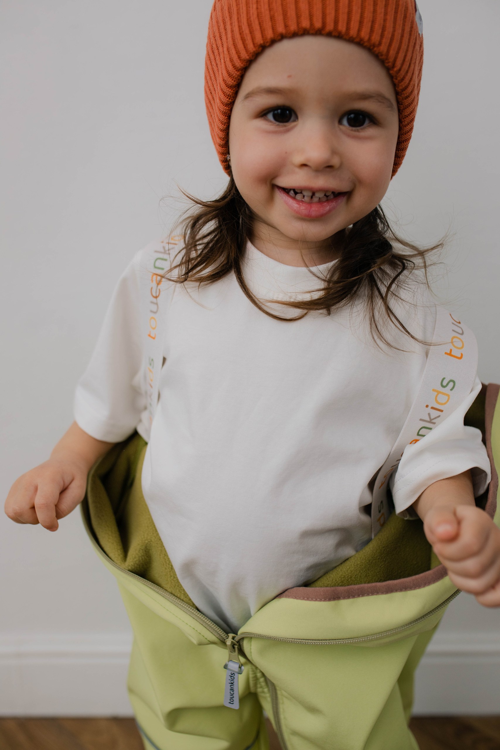 Удобные резинки не дадут штанинам заворачиваться и сохранят ножки в тепле. А молния наискосок позволит быстро и легко переодеть малыша, что особенно важно во время прогулок. Светоотражающие элементы для безопасности в темное время суток. Внутренние лямки для удобства ношения в помещении.