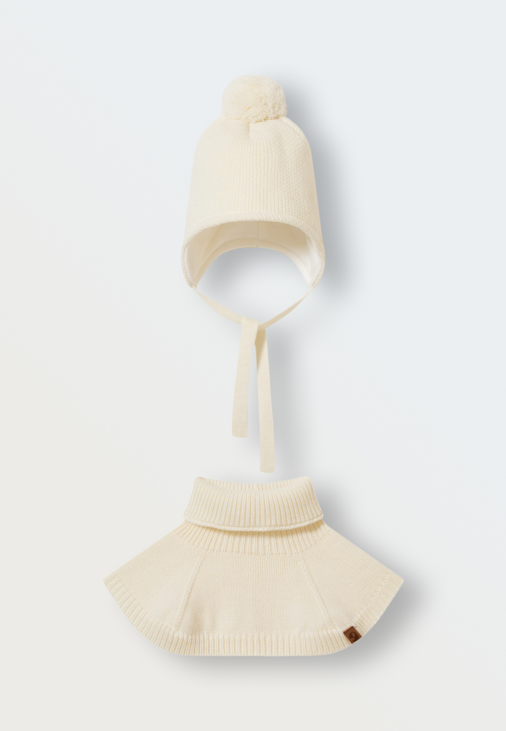 Комплект из шапки и манишки из пряжи с шерстью мериноса — тёплый, уютный и продуманный до мелочей.