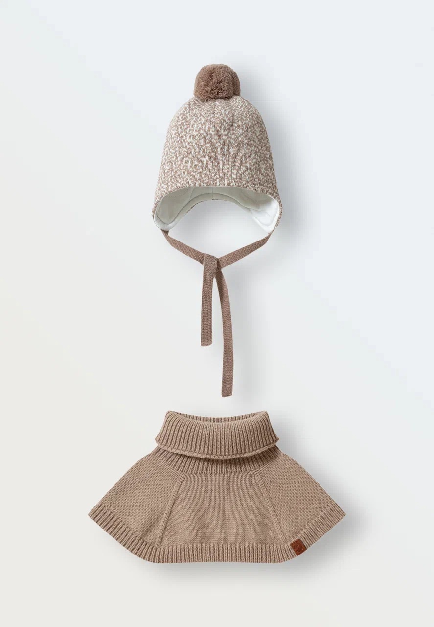 Комплект из шапки и манишки из пряжи с шерстью мериноса — тёплый, уютный и продуманный до мелочей.