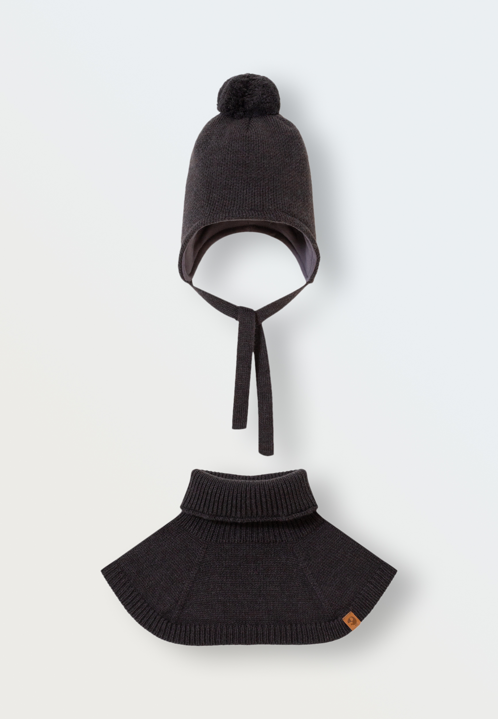 Комплект шапки и манишки — тёплый, уютный и продуманный до мелочей.
