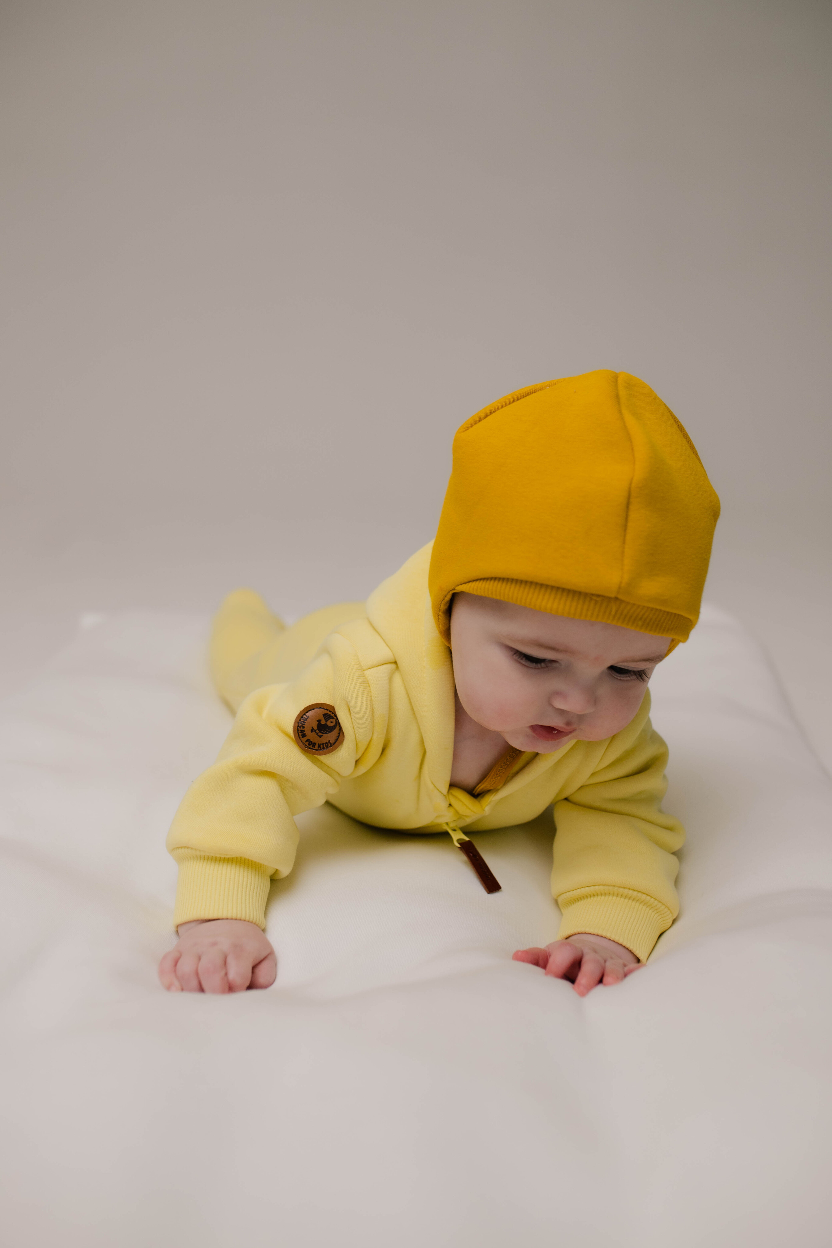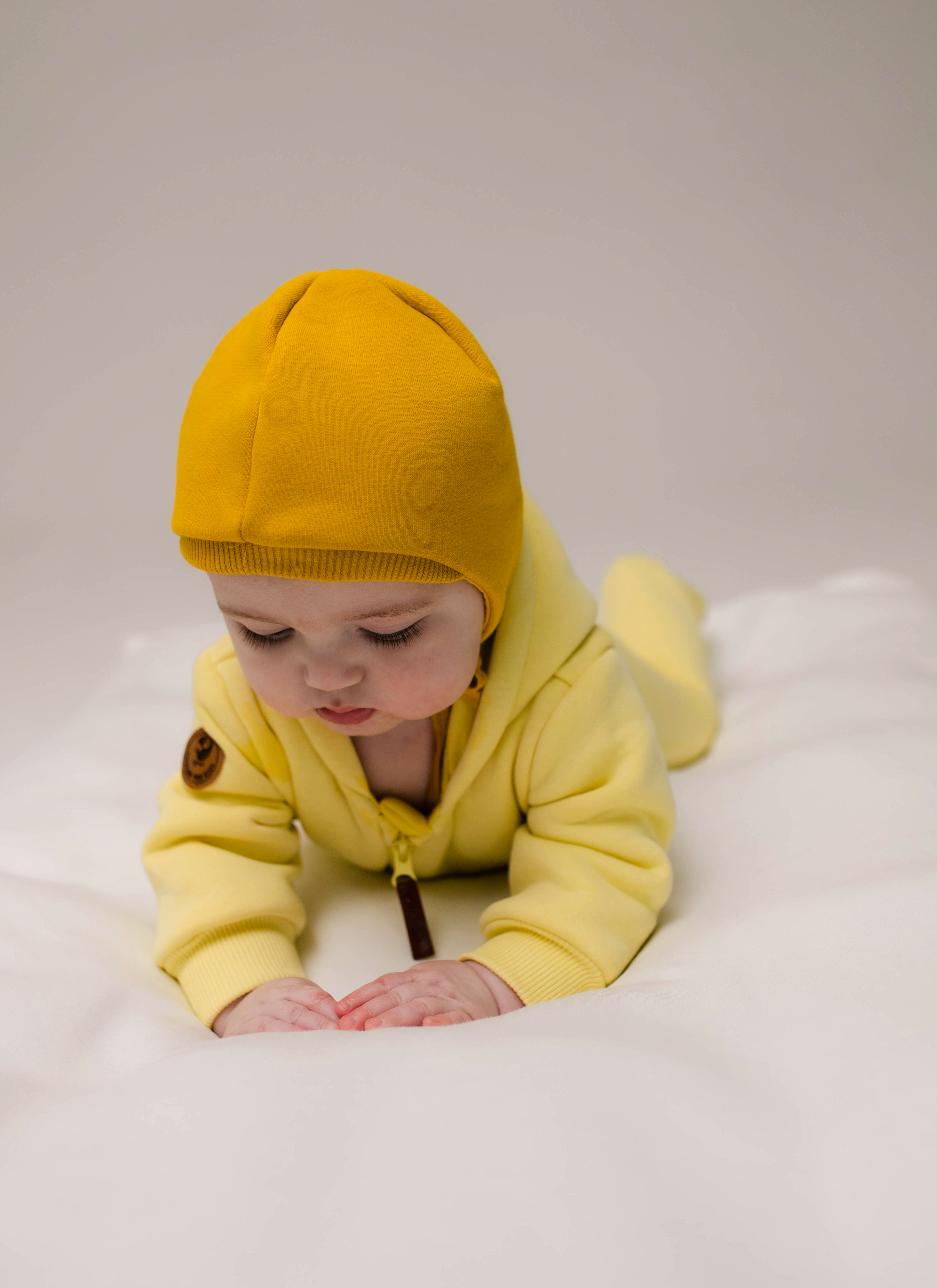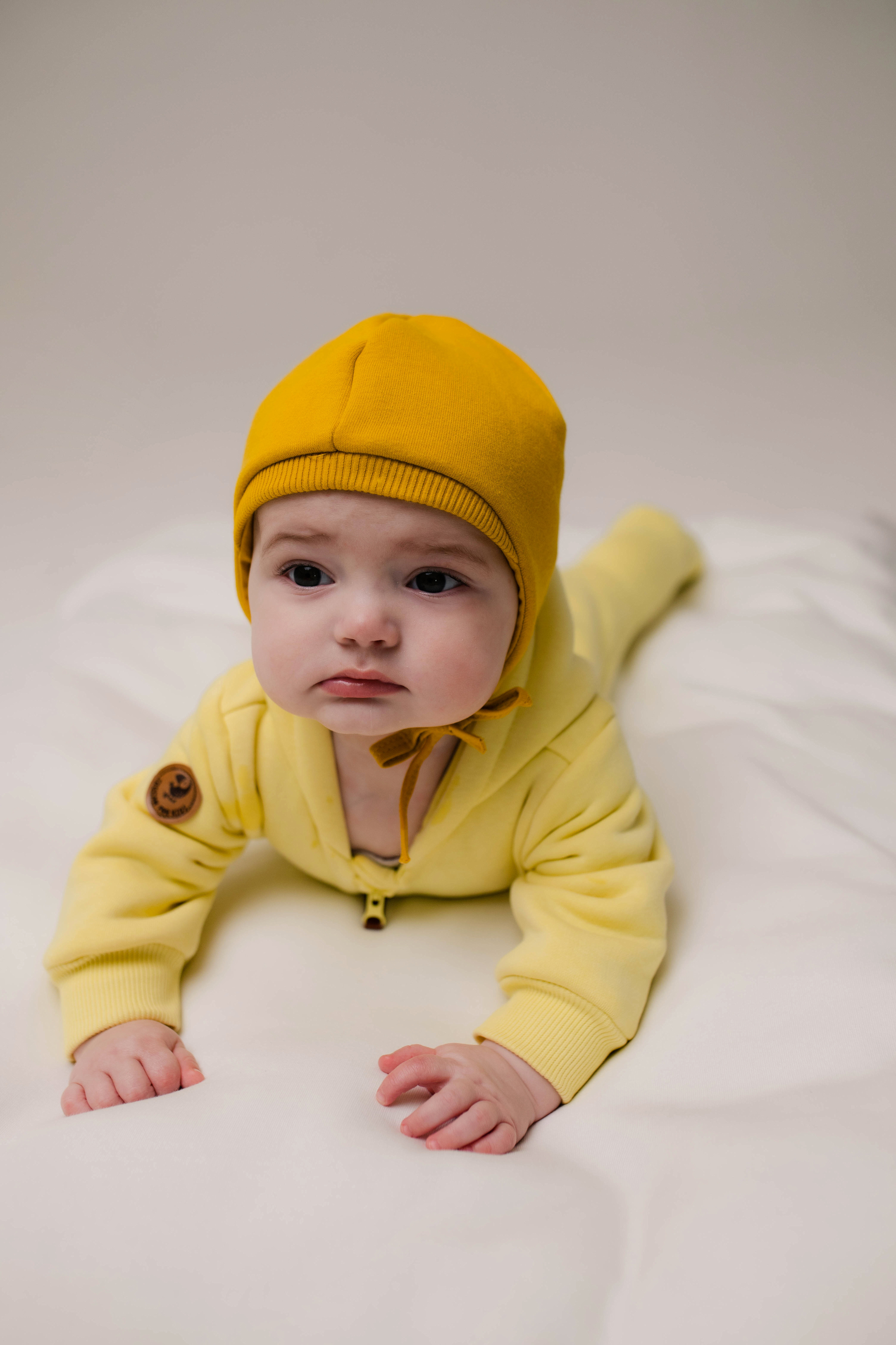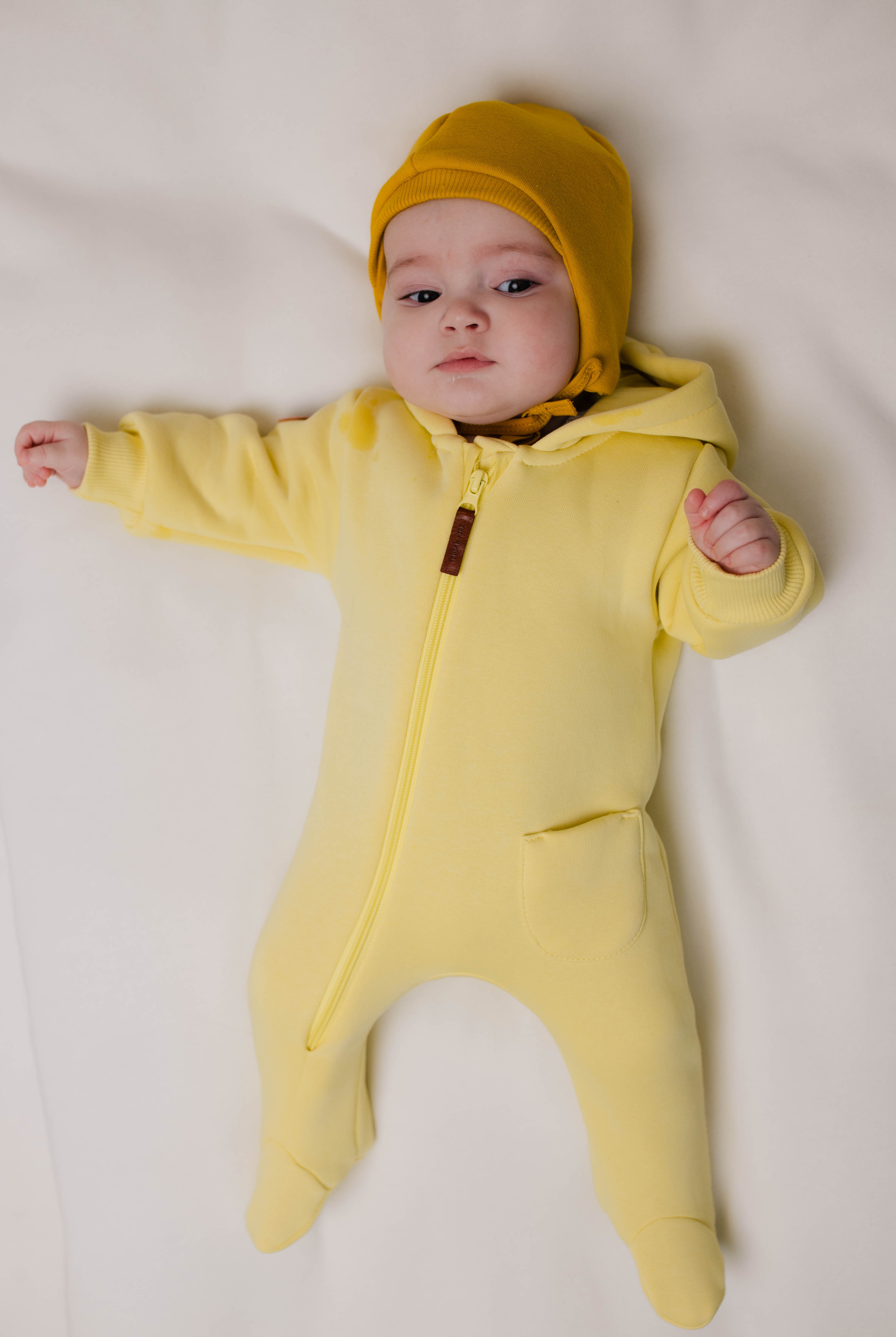 Шапочка станет прекрасным дополнением к комбинезону из футера.