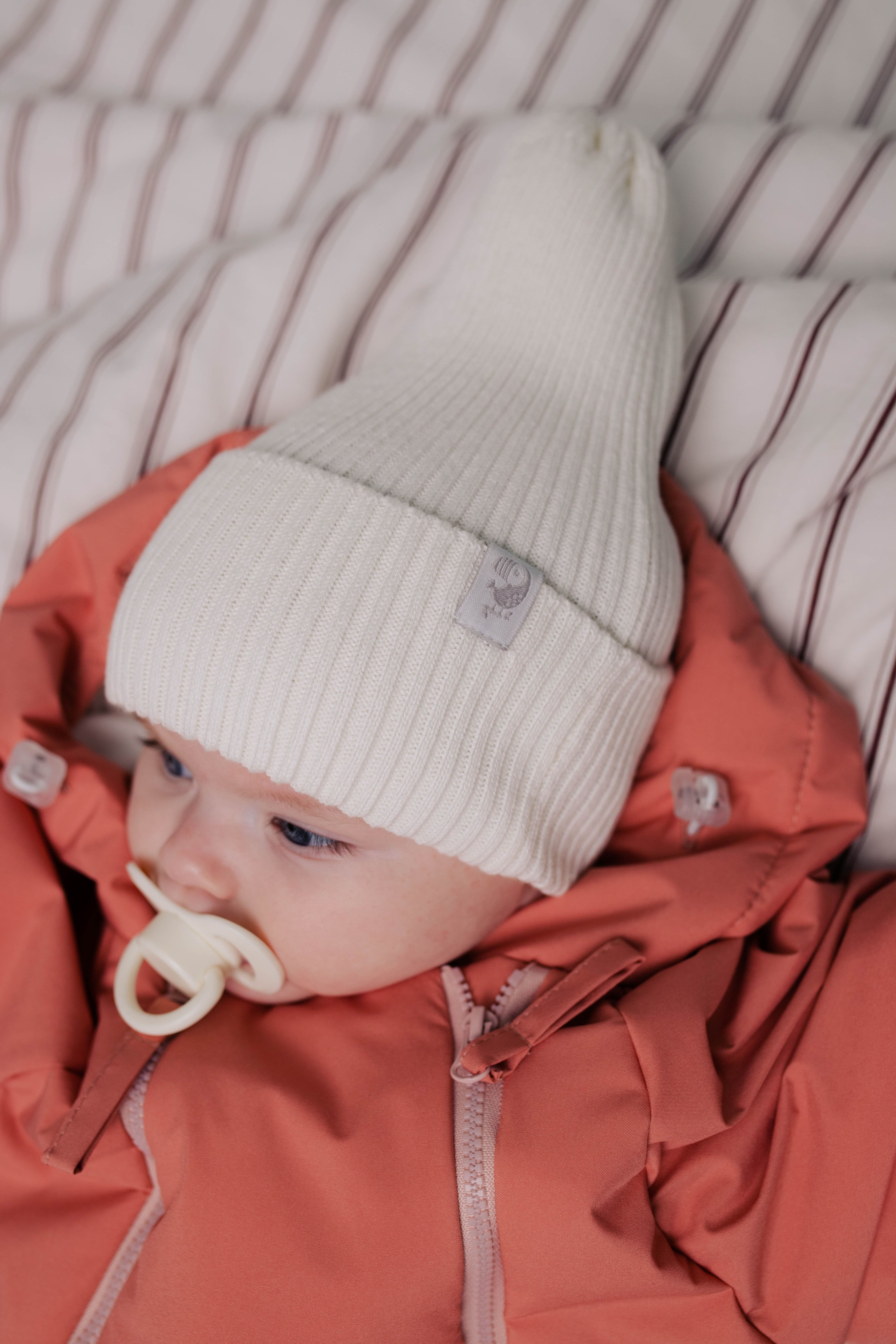 Хлопковая шапочка-лапша подходит малышам с рождения и старше. Вязка резинкой очень комфортна даже для самых маленьких. Шапочка комфортна для использования круглый год.