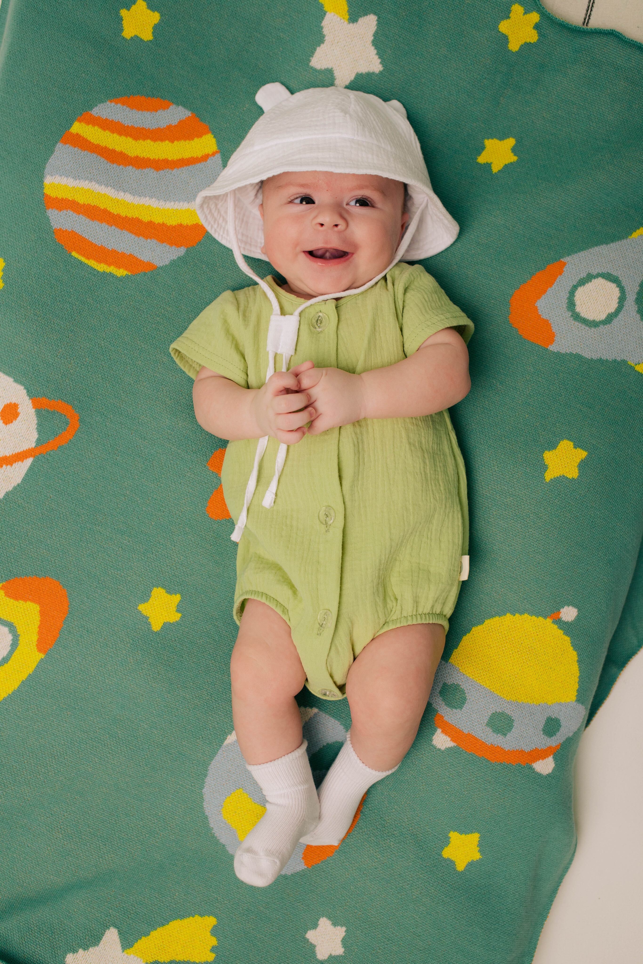 Удобно брать на море и прогулку. Благодаря дышащему материалу голова ребёнка не вспотеет, а удобные затяжки зафиксируют ее в удобном положении.