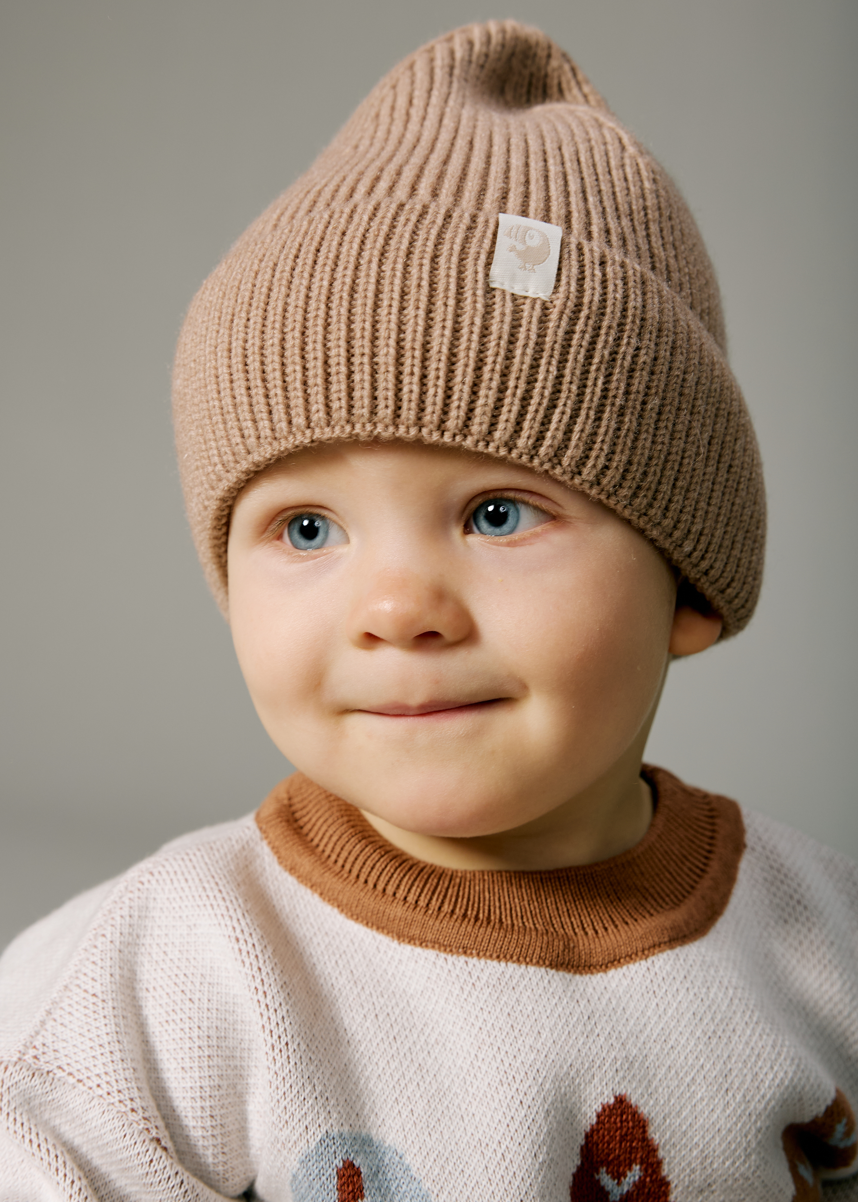 Шапка из мягкой пряжи с шерстью мериноса тёплая, эластичная и приятная к коже. Хорошо тянется, удобно садится по голове и не колется.