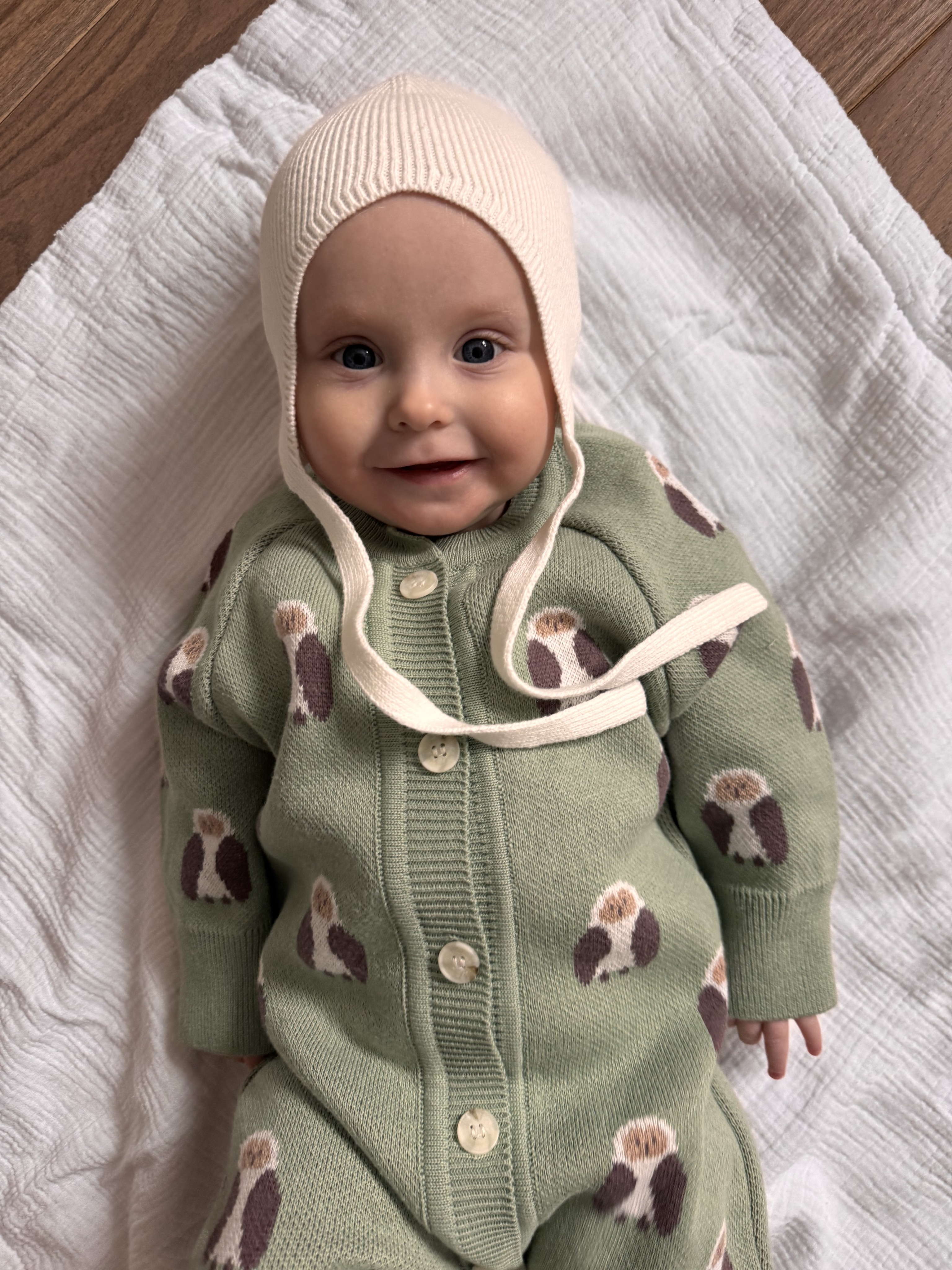 Удобная хлопковая вязаная шапочка станет отличным выбором для ребёнка в демисезон и летом в прохладную погоду. Завязки надёжно фиксируют её, ушки закрыты от ветра, а аккуратные швы не натирают кожу. Благодаря лаконичному дизайну она легко сочетается с любой одеждой.