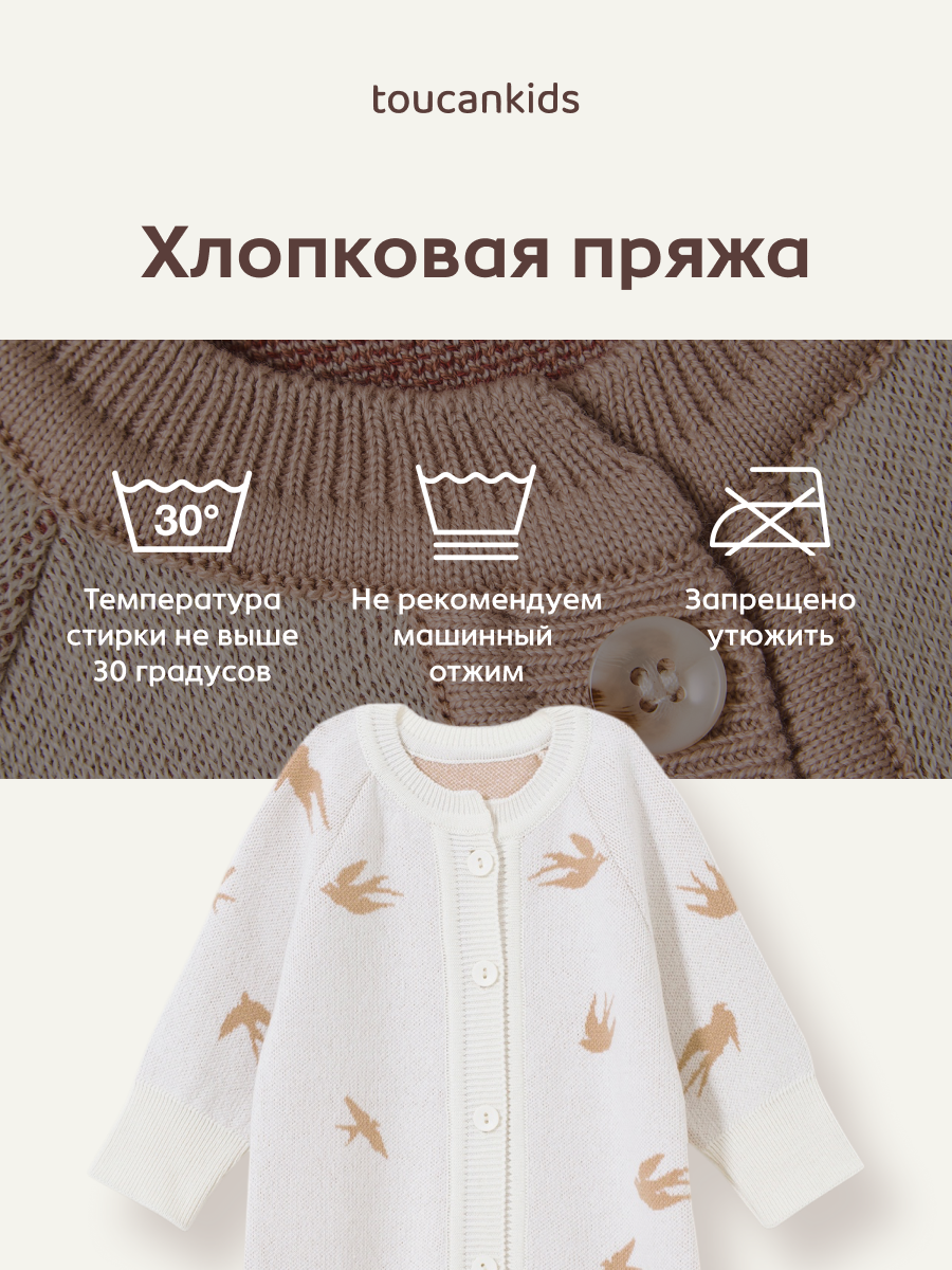 Хлопковый вязаный комбинезон для малышей. Он полюбится вам за мягкую, комфортную пряжу, которая совсем не колется.
