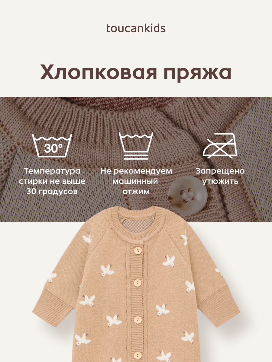 - 7055-319 Комбинезон вязаный "Птички" (экрю+бронза)