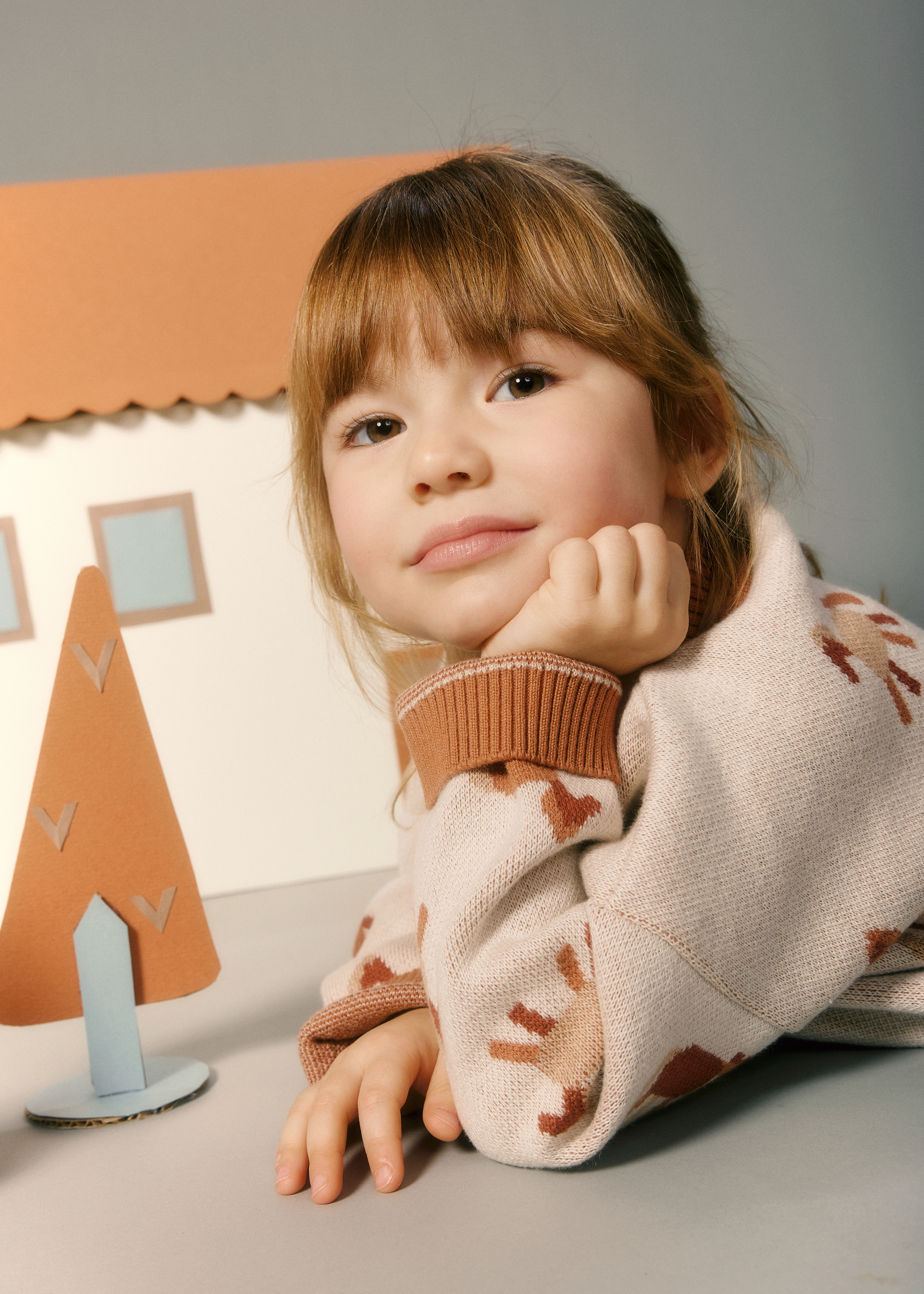 Аккуратный принт добавляет настроения и делает образ по-детски забавным.