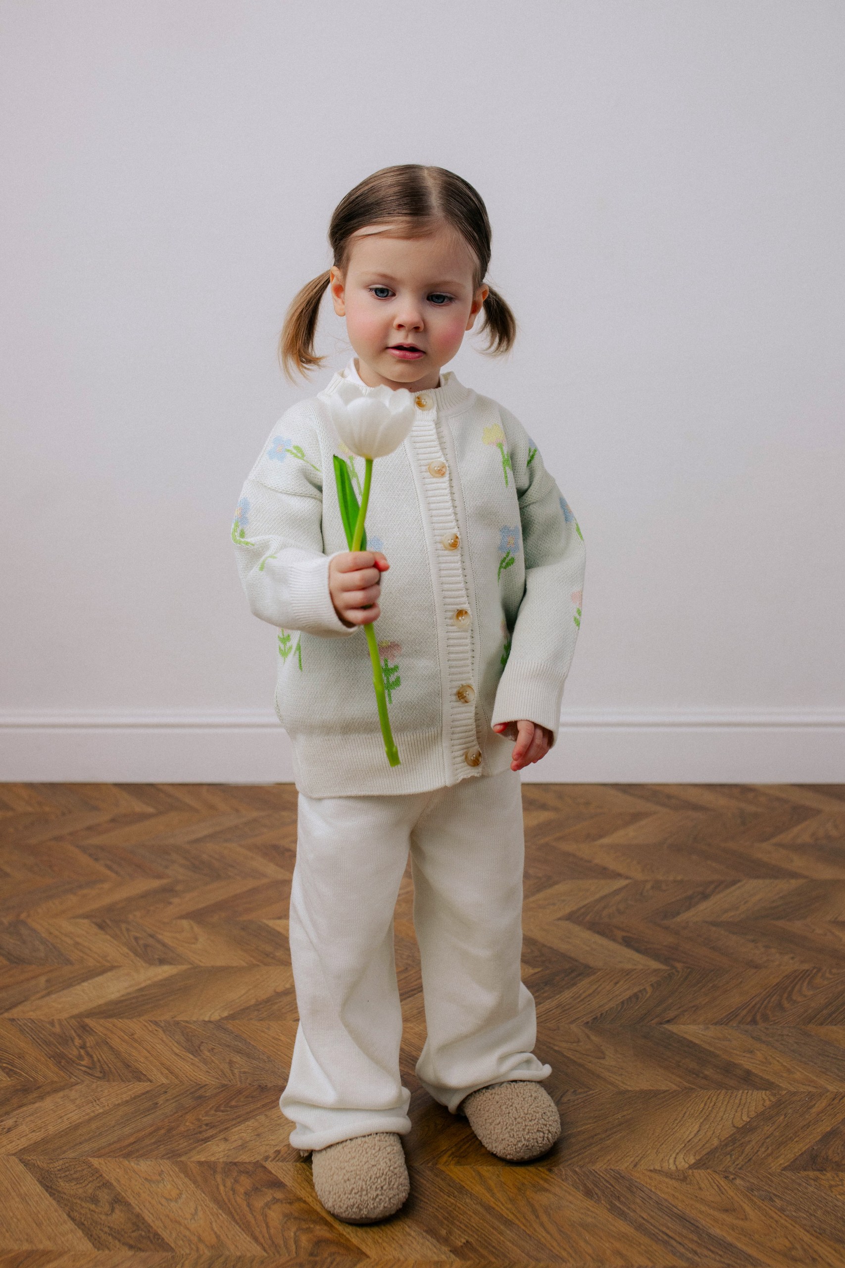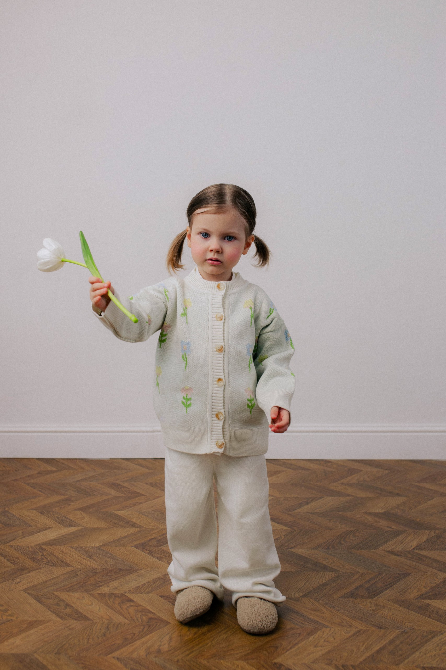 Аккуратный принт добавляет настроения и делает образ по-детски забавным.