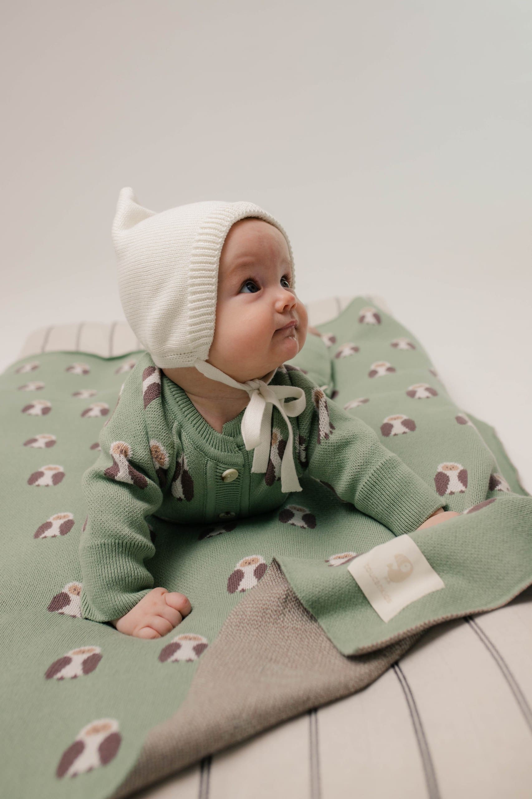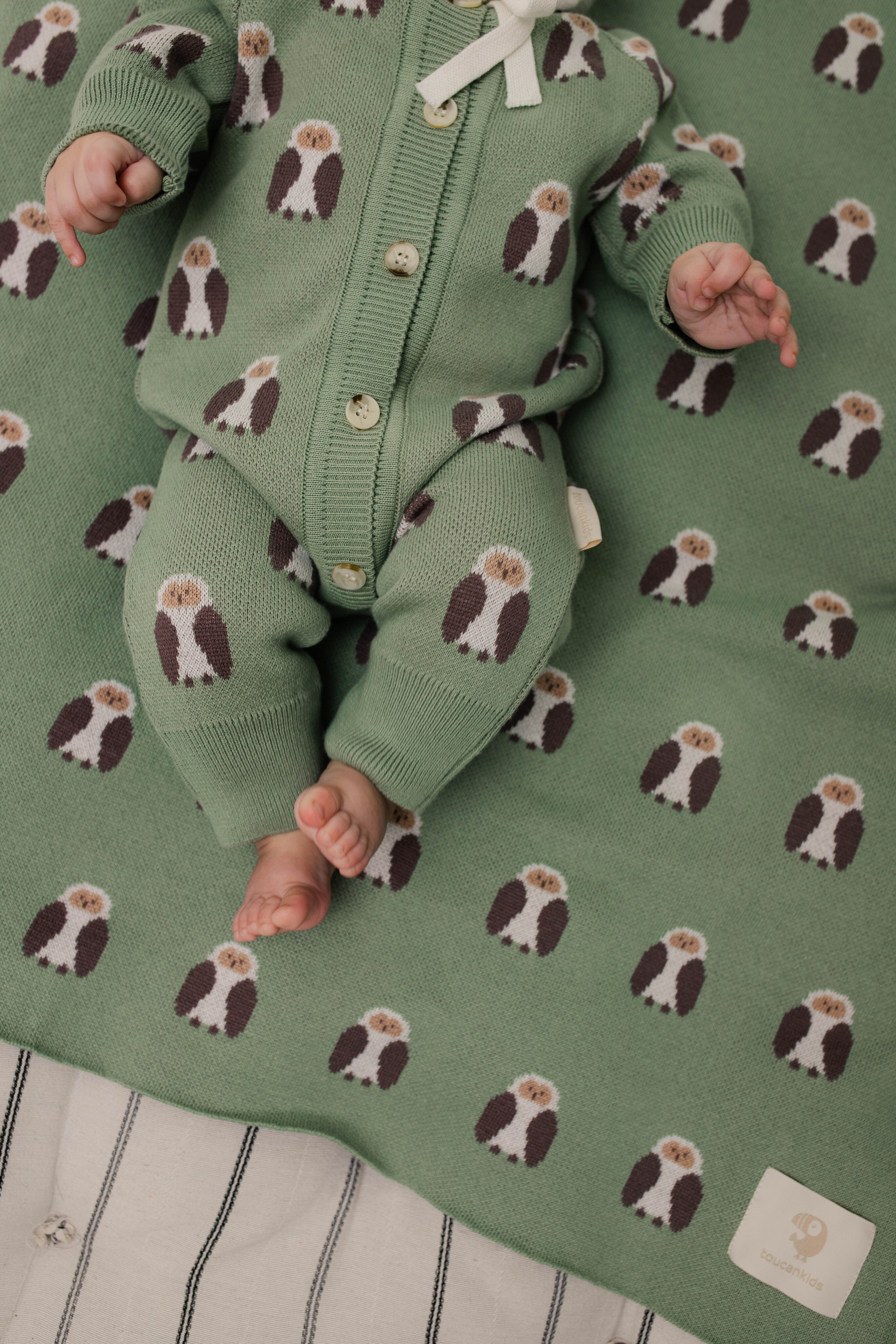 Вязаный хлопковый плед понравится вашему малышу своей мягкостью и милым рисунком. Он совсем не колется, не раздражает детскую кожу и легко сделает сон в кроватке или коляске уютнее.