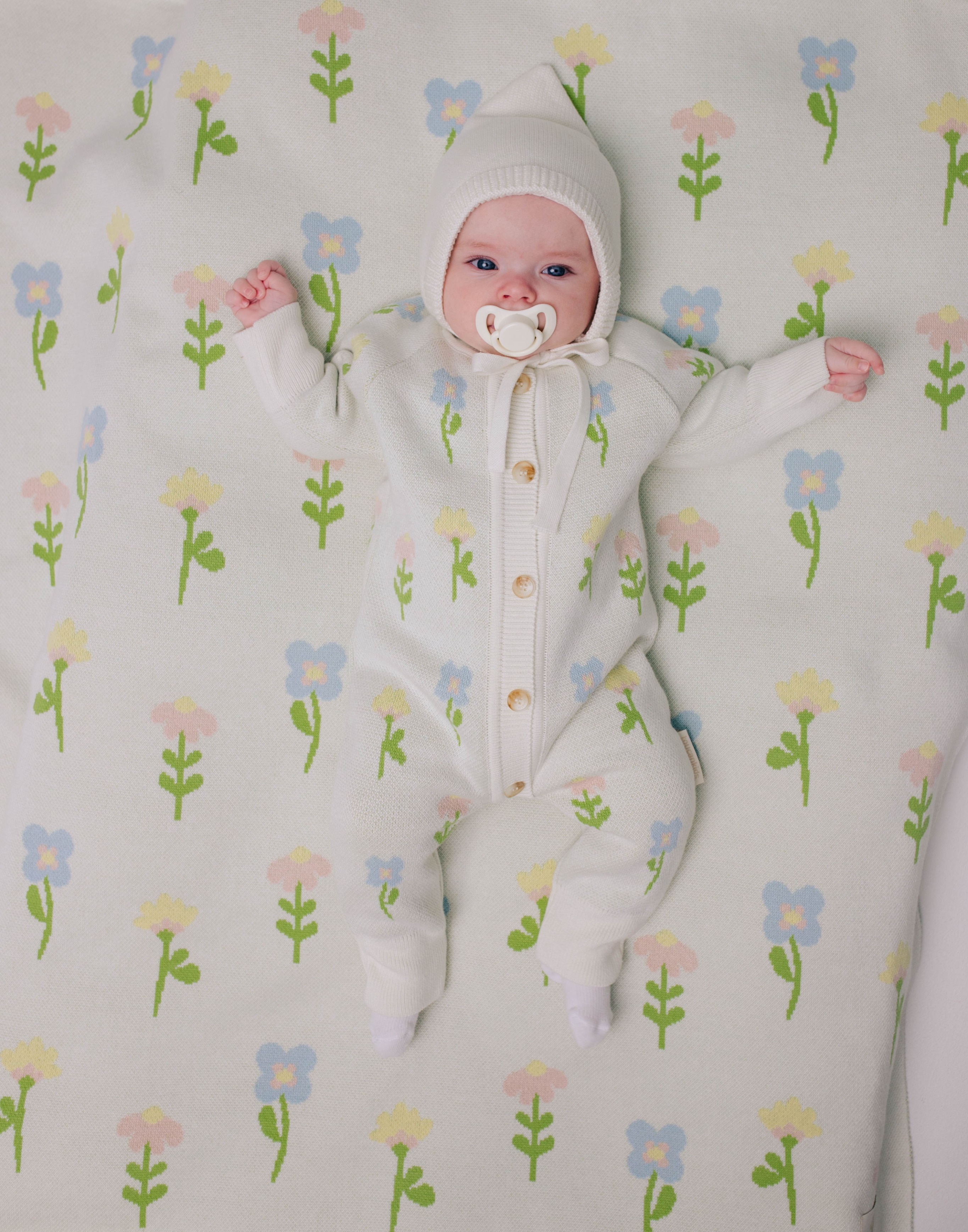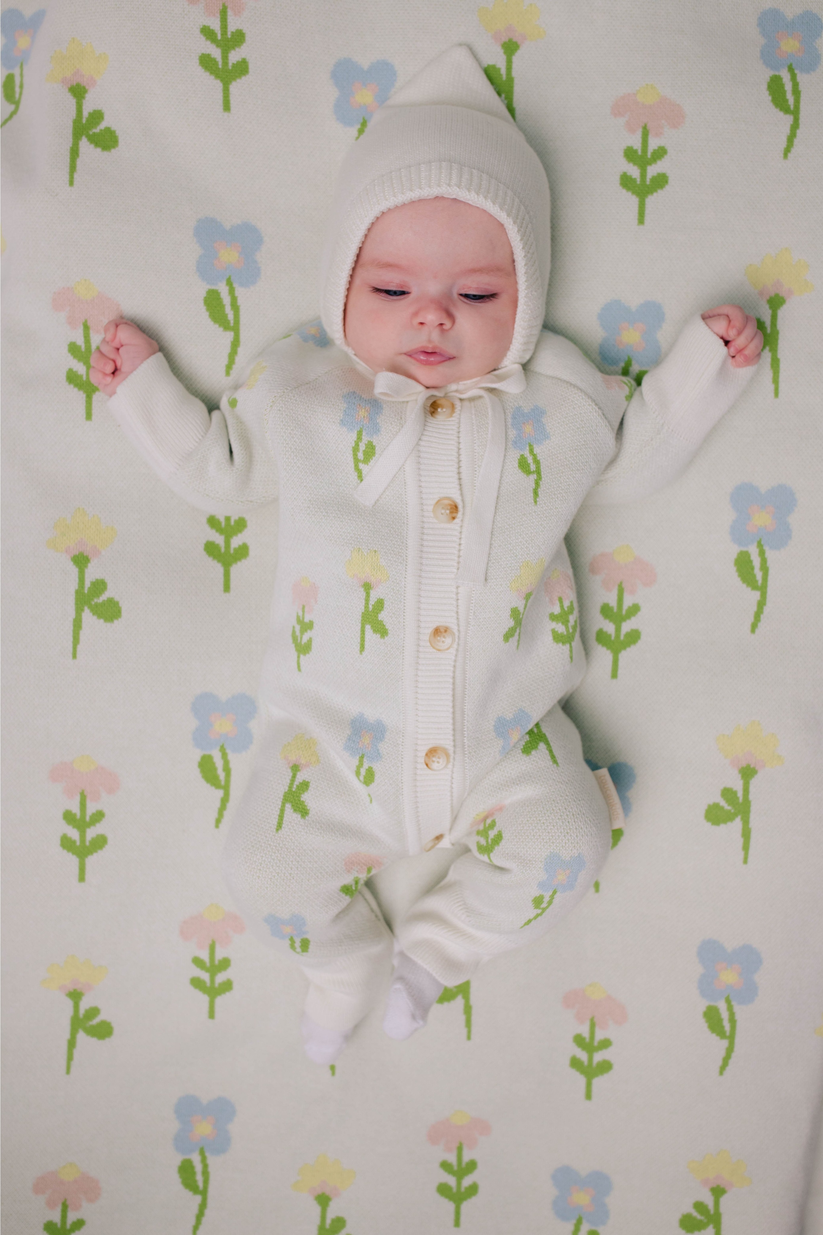 Вязаный хлопковый плед понравится вашему малышу своей мягкостью и милым рисунком. Он совсем не колется, не раздражает детскую кожу и легко сделает сон в кроватке или коляске уютнее.