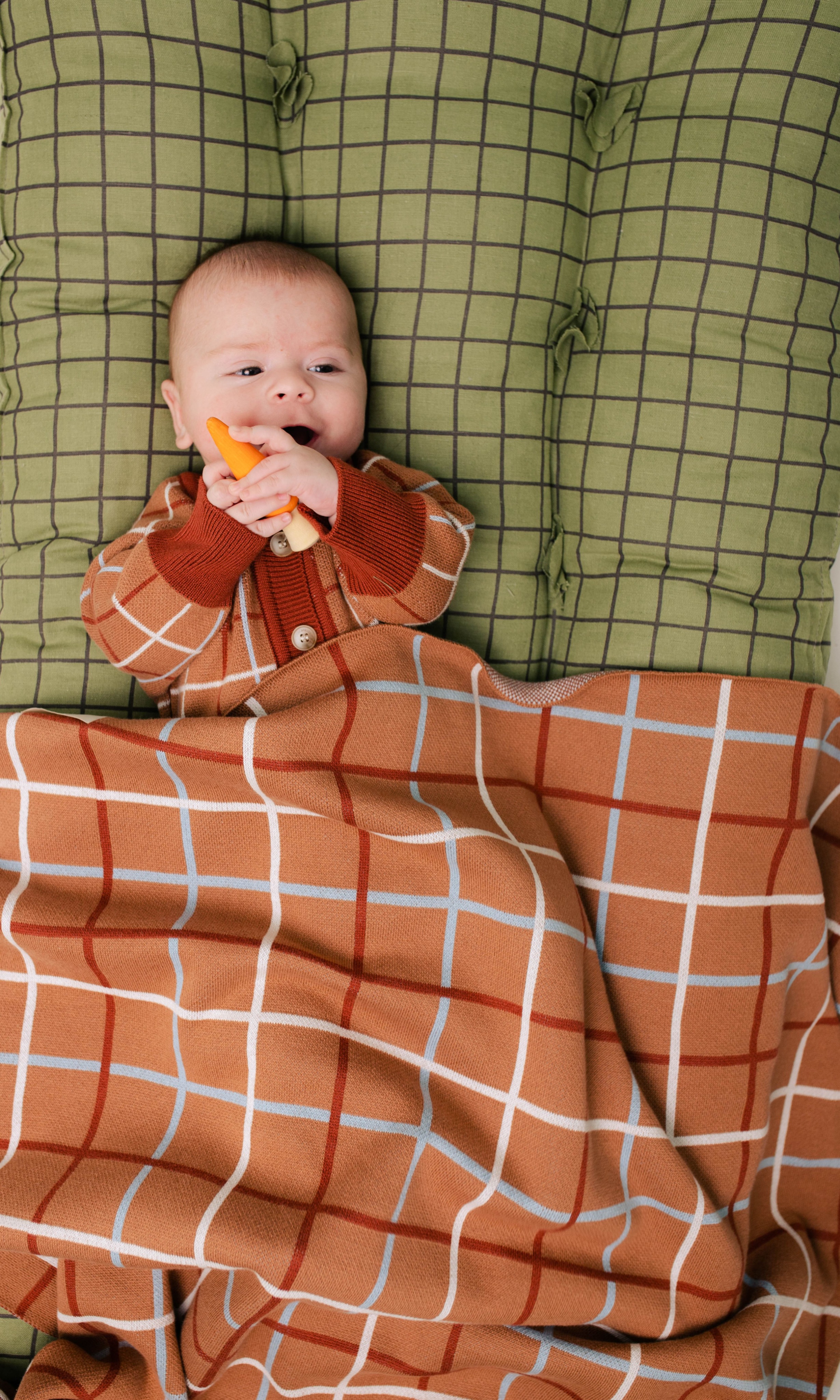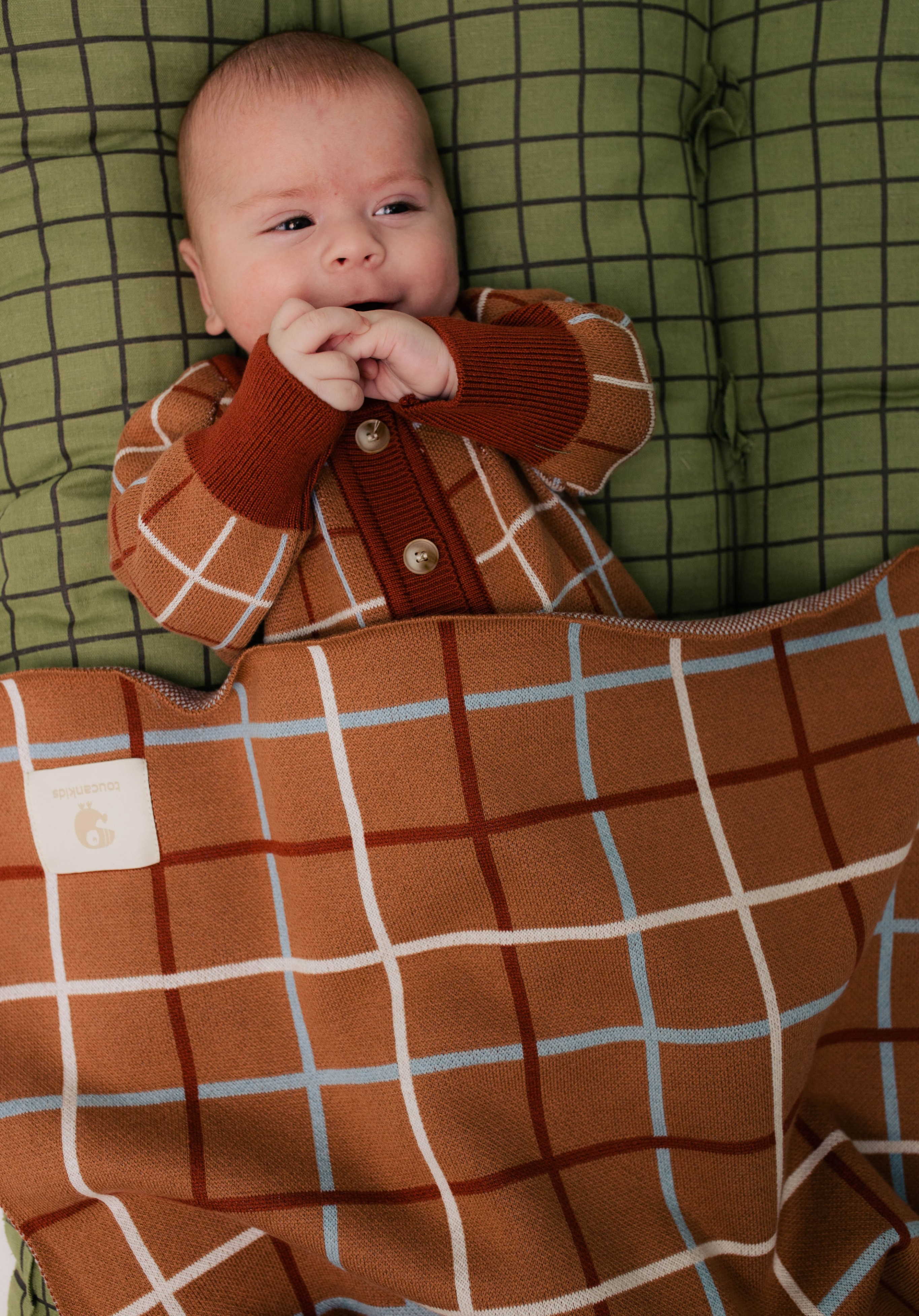 - Плед вязаный (клетка терракот)