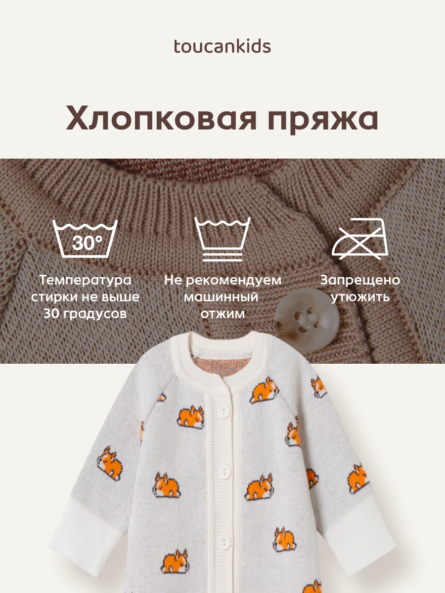 Хлопковый вязаный комбинезон для малышей. Он полюбится вам за мягкую, комфортную пряжу, которая совсем не колется.