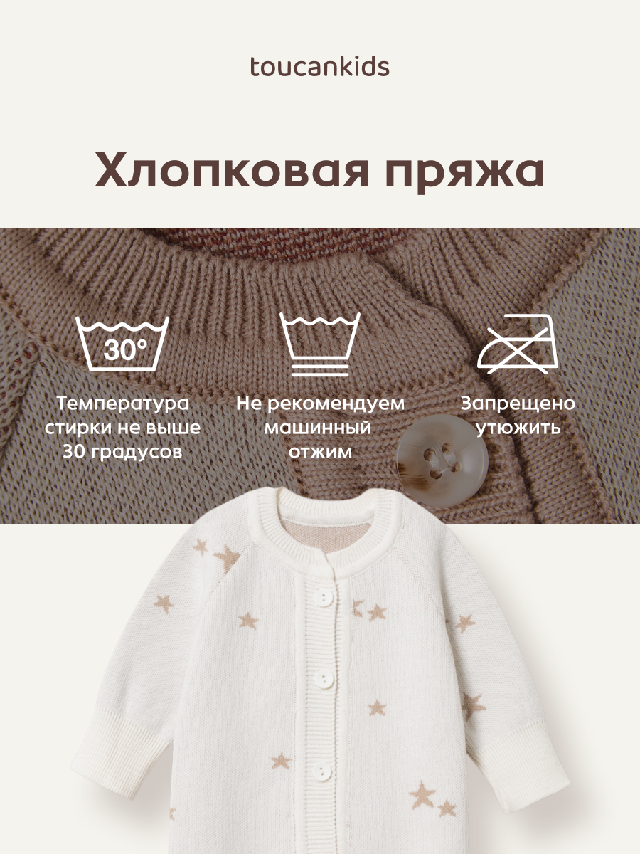 Хлопковый вязаный комбинезон для малышей. Он полюбится вам за мягкую, комфортную пряжу, которая совсем не колется.